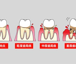 歯周病は、進行すると歯を支えている骨が溶けていきます。重度の状態になると歯を支えることができなくなり、歯が抜け落ちてしまいます。