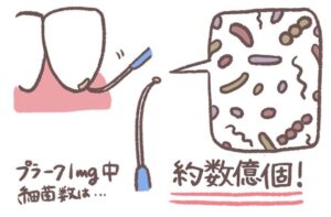 お口の中にできる歯垢1㎎の中には約1億~2億個、約600種のウイルスや細菌が存在していると言われます。
