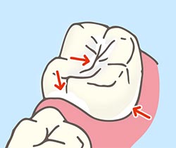 一昔前まではこの段階で削って取り除くのがよしとされていましたが、現在では初期むし歯は必ずしも削らなくても対処が可能だということで、削らずに様子を見るのが一般的になっています。