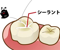 歯の溝の部分からむし歯になりやすいため、リスクが高い年齢のうちは歯の溝を歯科材料で埋める「シーラント」という予防処置がおすすめです。